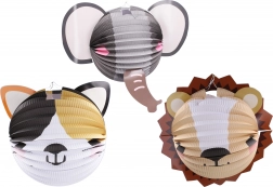 Lampion Kugel Tiere ist die perfekte Dekoration für Kinderfeste! Mit einem Durchmesser von 25 cm bringt sie Freude und Niedlichkeit in jeden Raum mit Motiven von Elefant, Löwe und Katze.