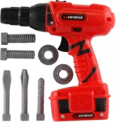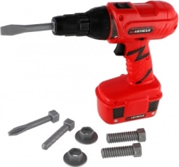Akku-Bohrmaschine für Kinder, die bei Rollenspielen rund um Hausreparaturen viel Spaß bereiten wird. Enthält auswechselbare Aufsätze und gibt realistische Bohren-Geräusche von sich.