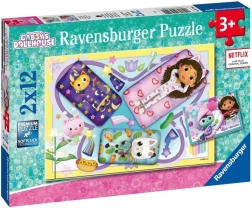 Das Puzzle 2x12 Kater Gabys Haus von Ravensburger enthe4lt zwei Puzzles, jedes mit 12 Teilen, ideal ffcr die kleinsten Me4rchenfans. Die Abmessungen jedes Bildes sind 26 x 18 cm.