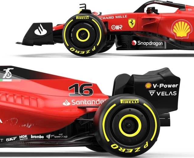 Die detailgetreue Karosserie mit Sponsoraufklebern und dem ikonischen roten FERRARI-Lack macht ihn zu einem attraktiven Sammlerstück und einem großartigen Spielzeug.
