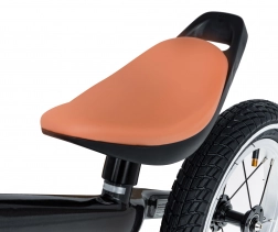 Ein ergonomischer Sattel aus Kunstleder und gummierte Griffe sorgen für eine komfortable und sichere Nutzung für Kinder.
