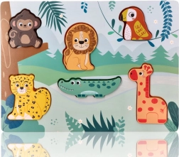 Das Holz 3D Puzzle Safari Tiere ist ein ideales Spielzeug für Kinder ab 12 Monaten. Es hilft, kognitive Fähigkeiten zu entwickeln, indem Kinder verschiedene Tierformen in die passenden Ausschnitte setzen.