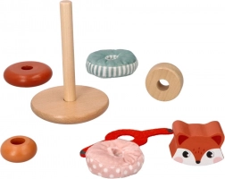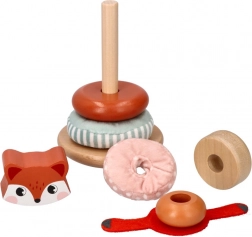Stapel-Sturm mit Fuchsmotiv ist das ideale Spielzeug für Kleinkinder, die ihre Sinne erkunden möchten. Jedes Spielzeugstück bietet verschiedene Texturen, von glattem Holz bis zu weichen Stoffen, und ist darauf ausgelegt, die sensorische Integration zu fördern. Klare Farben und Muster helfen dabei, die visuelle Wahrnehmung zu verbessern, während das Stapeln und Manipulieren der einzelnen Elemente die grobe und feine Motorik stärkt.