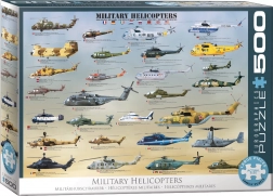 Dieses Puzzle wird jeden Luftfahrt-Enthusiasten begeistern! Es zeigt mehr als 25 der beliebtesten Militärhubschrauber der Geschichte, darunter Eurocopter Tiger, Comanche und Chinook.
