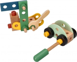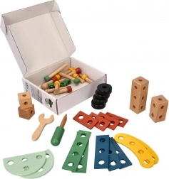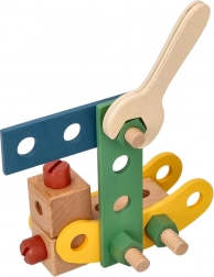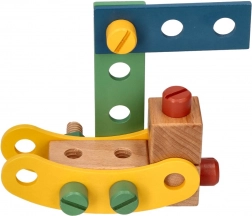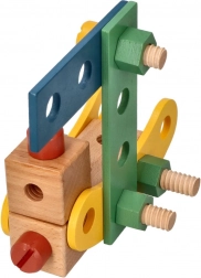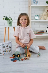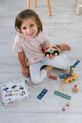 Wir präsentieren den einzigartigen Holzbaukasten für Kinder, der die Entwicklung von Hand-Auge-Koordination, logischem Denken und Kreativität fördert. Das Set enthält Schrauben, Leisten, Muttern, Räder sowie einen Schraubenzieher und Schlüssel - alles, was zum Bauen von Fahrzeugen benötigt wird.