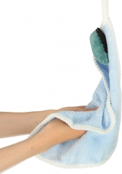 Die Mischung aus Polyester und Nylon ist angenehm weich, nimmt gut auf und trocknet schnell, sodass das Handtuch rasch wieder einsatzbereit ist. Die praktische Schlaufe ermöglicht das Aufhängen am Haken genau auf Kinderhöhe. Die Pflege ist einfach – Maschinenwäsche bei 30 °C mit ähnlichen Farben.