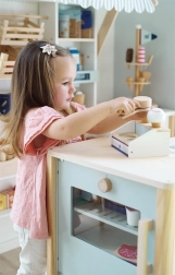 Minimalistisches Design und natürliche Materialien passen perfekt zum Kaufmannsladen oder Café-Spiel.