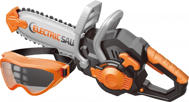 Die Schutzbrille sorgt für Sicherheit beim Spielen. Ein Knopf auf der linken Seite ermöglicht die einfache Aktivierung der Säge und trägt zu einem realistischen Spielerlebnis bei.