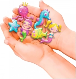 Komplettes Kreativ-Set mit Formen von Meerjungfrauen und Meerestieren. Träufeln Sie Gel in die Form, tauchen Sie sie ins Wasser und beobachten Sie die magische Verwandlung in eine elastische 3D-Figur.