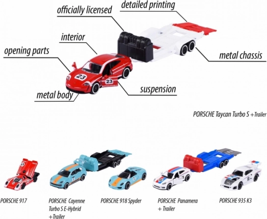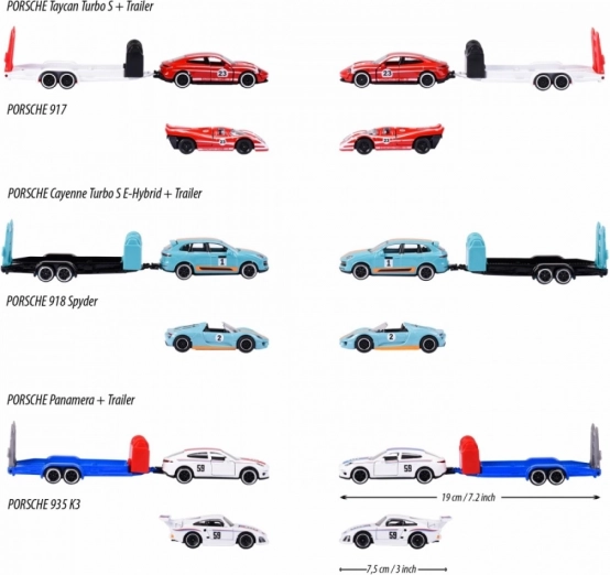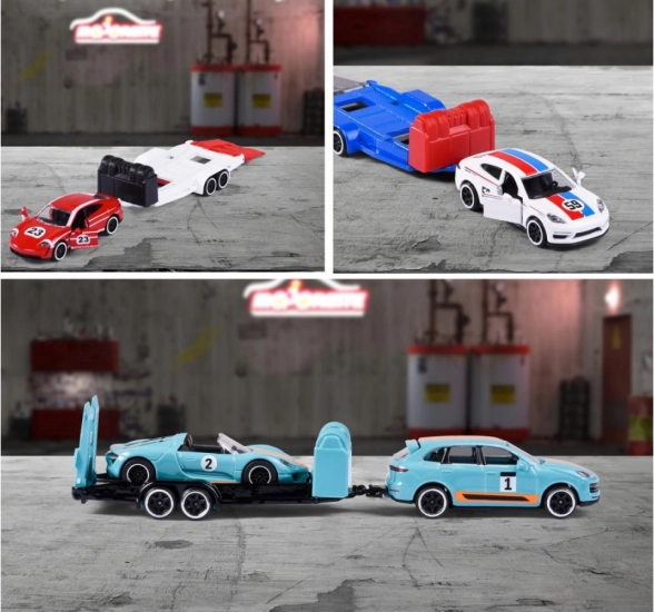 Majorette Porsche mit Anhänger, Mix 3 Varianten