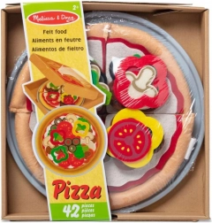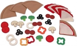 Dieses Pizza-Set aus Filzmaterial fördert kreatives und fantasievolles Spielen und ermöglicht es Kindern, ihre eigenen Kombinationen von Zutaten auf der Pizza zu gestalten.
