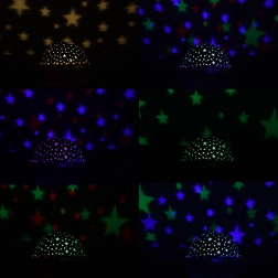 Der Nachtprojektor für Sterne verwandelt das Zimmer in ein gemütliches Planetarium. Die farbige Projektion von Sternen und Mond vermittelt Geborgenheit, hilft Kindern leichter einzuschlafen und dient zugleich als schöne Wohnraumdekoration. Dank der einfachen Bedienung mit drei Tasten wählen Sie schnell Ihren Lieblingsmodus und die Rotation der Kuppel.