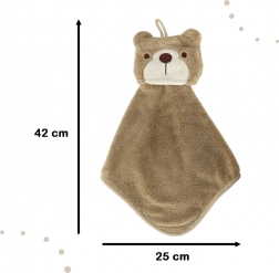 Dieses Kinderhandtuch mit Bärenmotiv ist speziell für Kinder entworfen. Seine kompakten Maße von 25 x 42 cm sind ideal für kleine Kinderhände, um eine einfache Handhabung und Nutzung zu gewährleisten. Das Handtuch ist mit einer praktischen Schlaufe zum Aufhängen ausgestattet, was die Platzierung auf einem Haken in Reichweite der Kinderhände erleichtert.