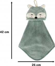 Das Handtuch verfügt über eine Aufhängeschlaufe, sodass es leicht in idealer Höhe an einem Haken platziert werden kann. Die Tasche mit Fuchs ermöglicht, das Handtuch praktisch für den Kindergarten, Besuche oder den Urlaub zu verstauen.