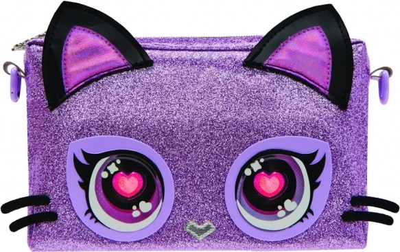 Bringe jedes Outfit mit der interaktiven Tasche PURSE PETS Purdy Purrfect zum Strahlen. Beim Drücken des Näschens wechseln ihre leuchtenden Augen in die Farben des Regenbogens, sodass du sie mühelos an Stimmung und Outfit anpassen kannst. Glitzernder lila Stoff, Katzenöhrchen und ein Reißverschluss vereinen Stil und Praktikabilität für Kinder.