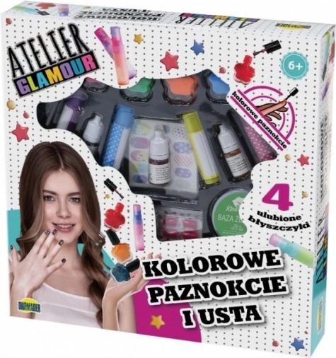 Dieses Make-up-Set von Atelier Glamour bietet eine Palette von farbenfrohen Nagellacken und Lippenstiften, mit denen Sie Ihre Kreativität und Persönlichkeit ausdrücken können. Ideal für den täglichen Gebrauch oder besondere Anlässe, bei denen Sie strahlen möchten.