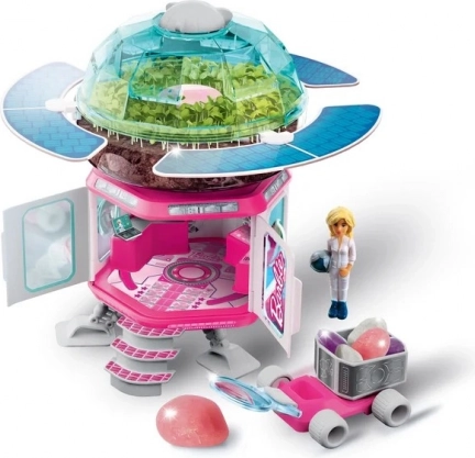 Dieses inspirierende Wissenschaftsset entführt Kinder in die Welt der kosmischen Entdeckungen. Sie bauen eine spezielle Basis für Experimente mit Pflanzen und Bodenanalysen, setzen einen mini Rover für die Erkundung unbekannter Planeten zusammen und verzieren die Modelle mit Stickern. Ebenfalls enthalten ist ein kleines Barbie-Astronautinnenmodell, das Kinder auf ihren Forschungsreisen begleitet.