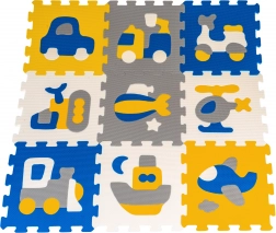 Diese Schaumpuzzle-Matte mit Autos, Flugzeugen und weiteren Fahrzeugen ist ideal für das Kinderzimmer oder die Spielecke. Aus 9 großen Teilen entsteht schnell eine weiche Spielfläche, die vor Bodenkälte schützt und Stürze abfedert. Die herausnehmbaren Formen aus jedem Teil dienen als eigenständiges Puzzle und unterstützen das Lernen durch Spiel – Erkennen von Formen und Farben, Hand-Auge-Koordination sowie logisches Denken.