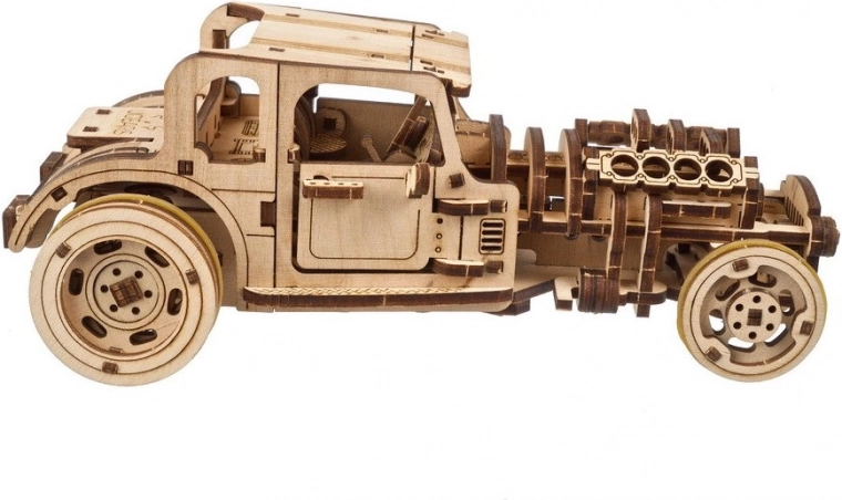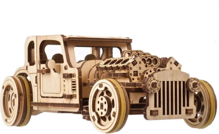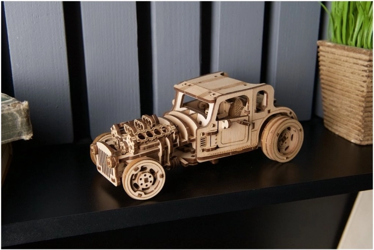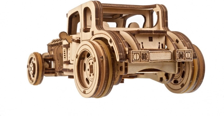 Gönnen Sie sich einen authentischen Hot Rod aus der UGEARS-Schmiede. Das Modell Furious Mouse begeistert Auto- und 3D-Puzzle-Fans: Es bietet zwei Antriebsarten (mit Ratschen-Schlüssel aufgezogener Federantrieb oder klassisches Zurückziehen auf ebener Fläche), eine geschmeidige Lenkung der Vorderräder und reichhaltige mechanische Details. Dank präziser Laserzuschnitte passen die Teile perfekt, sodass Sie weder Klebstoff noch Spezialwerkzeug benötigen.