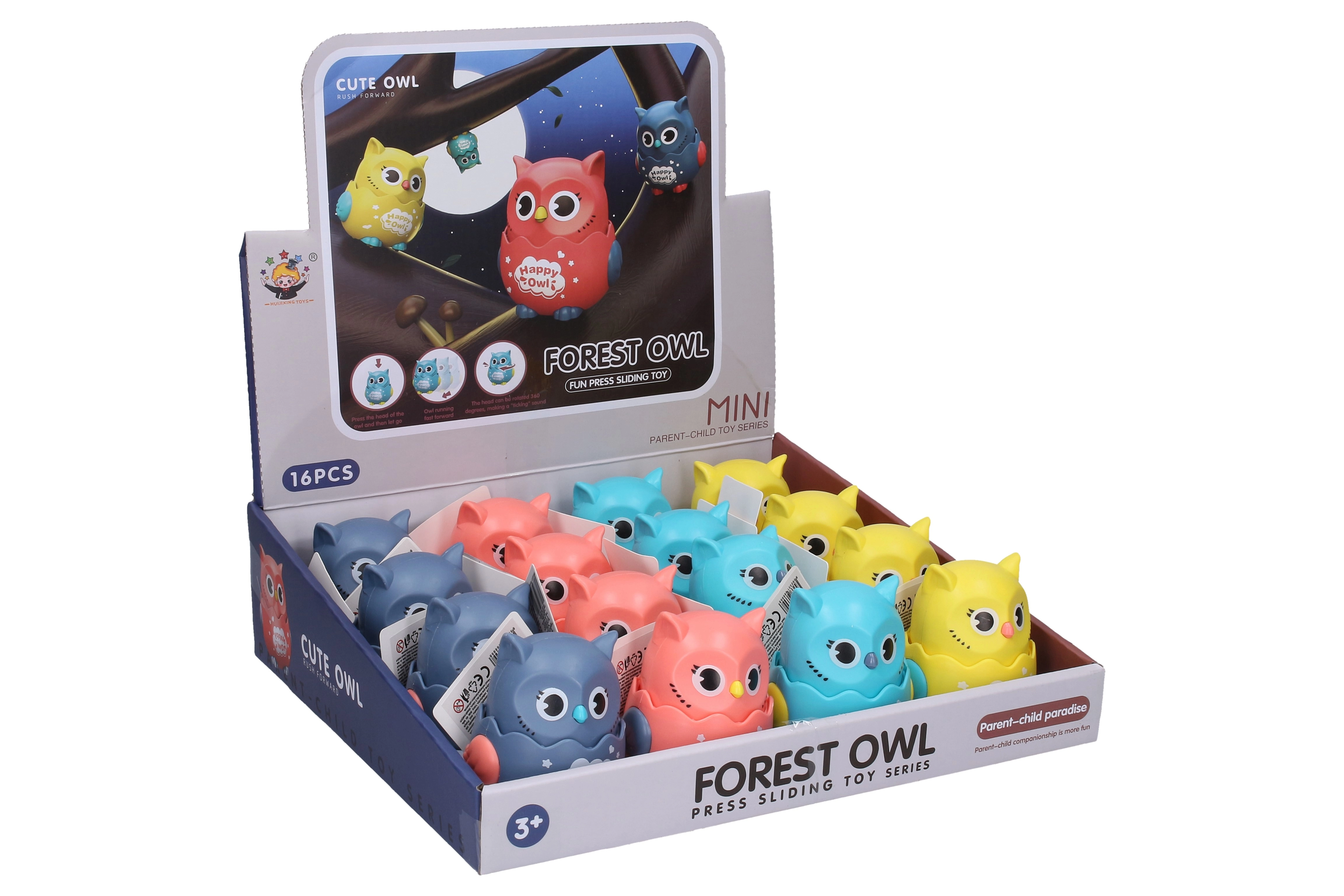 Die niedliche Eule auf Rädern mit einer Größe von 8 cm begeistert jedes Kind ab 3 Jahren. Dank eines cleveren Mechanismus fährt sie nach dem Herunterdrücken des Kopfes los und sorgt für jede Menge Spaß. Es stehen 4 Farbvarianten zur Verfügung – Blau, Grau, Gelb und Rosa.