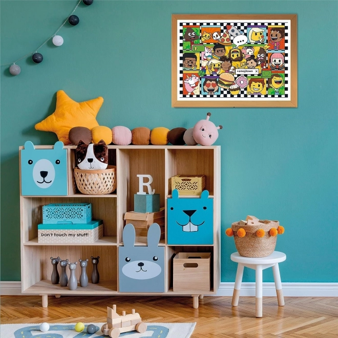 Die farbenfrohe Szene mit beliebten Emoji-Figuren motiviert zum Puzzeln und beschäftigt Groß und Klein stundenlang.