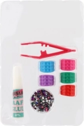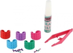 Das praktische Set enthält Ringe, Kleber, Pinzette und bunte Steinchen – Kinder können direkt nach dem Öffnen loslegen.