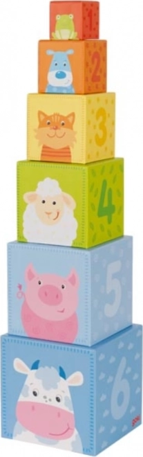 Dieser Stapelturm aus 6 hochwertigen Kartonwürfeln bietet Kindern jede Menge Entdeckerfreude. Farbige Tierillustrationen regen Fantasie und Lernen an, während die robuste Ausführung für eine lange Lebensdauer sorgt. Der Turm lässt sich leicht auseinandernehmen und verstauen – ideal auch für unterwegs.