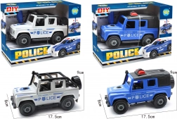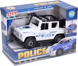Lustiges Bauset für kleine Mechaniker: schraubbarer Polizeijeep mit Freilauf fördert Feinmotorik und Vorstellungskraft. Im Set enthalten sind ein Auto und ein praktischer Kreuzschraubendreher mit integriertem Maulschlüssel im Griff für kinderleichtes Zerlegen und Wiederzusammenbauen.