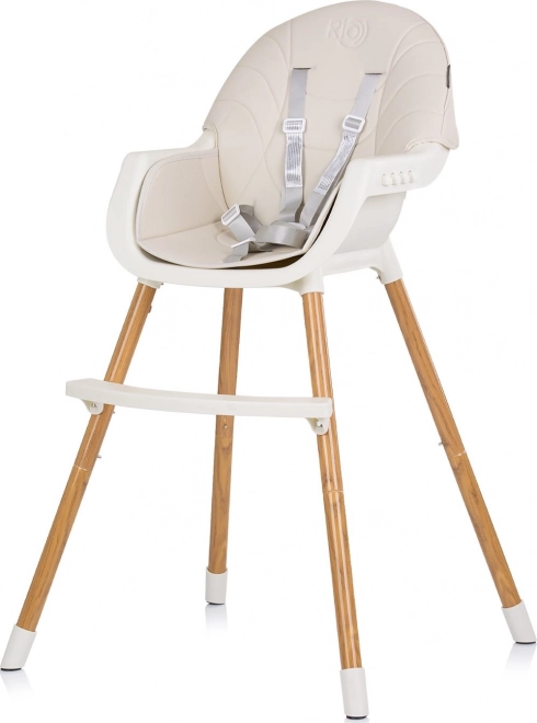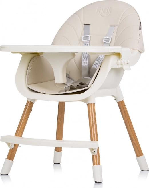 Der Rio 2-in-1 Hochstuhl bietet flexible Einstellmöglichkeiten, da er sowohl als hoher als auch niedriger Stuhl genutzt werden kann und für Kinder geeignet ist, die selbstständig sitzen. Dank des bequemen Sitzes mit Lederbezug ist der Stuhl leicht zu reinigen und verleiht dem Interieur ein modernes Aussehen. 5-Punkt-Sicherheitsgurte bieten maximale Sicherheit für Ihr Kind während der Mahlzeiten.