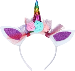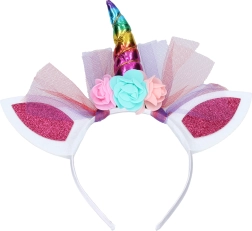 Verwandeln Sie jede Gelegenheit in ein magisches Erlebnis mit dem Einhorn-Haarreif. Das bunte Horn und das verspielte Design verleihen dem Kinderkostüm einen bezaubernden Look, der sofort ins Auge fällt. Der Haarreif ist leicht, sitzt gut auf dem Kopf und passt den meisten Kindergrößen.