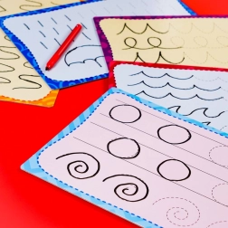 Im Set sind 18 Tafeln enthalten, auf denen mit dem einzigartigen ergonomischen Stift, der zum Lieferumfang gehört, geschrieben und gezeichnet werden kann.