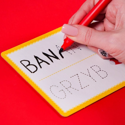 Im Set sind 32 Tafeln enthalten, auf denen mit dem einzigartigen ergonomischen Stift, der Teil des Sets ist, geschrieben und gezeichnet werden kann.