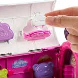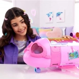 Das rosafarbene Flugzeug BARBIE Extra Fly Minis eröffnet Kindern eine fantasievolle Welt voller Farbe und Stil. Ein aufklappbares Dach, ausklappbare Treppe und die hintere Klappe, die sich in einen Regenbogen-„Runway“ verwandelt, machen jeden Flug zur Modenschau. Die Mini-Pilotin mit rosa Haaren, Kappe mit Herzchen und Ohrringen in Wolkenform verleiht dem Spiel einen einzigartigen Charakter.