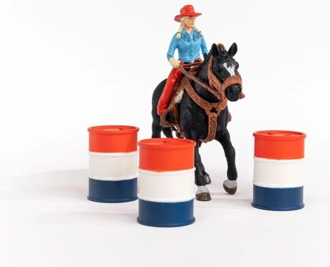 Unternehmen Sie eine wilde Fahrt mit unserem Schleich Farm World Set, das das Barrel Racing repräsentiert. Dieses originelle Set bietet ein authentisches Wild-West-Erlebnis mit Rennen um bunte Fässer. Bereiten Sie sich auf spannende Herausforderungen vor und finden Sie heraus, ob Sie ein vierblättriges Kleeblatt für Glück oder nur Ihre Fähigkeiten zum Sieg benötigen.