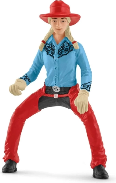Einzigartige Cowgirl-Figur in blauem Hemd und roten Hosen mit Hut. Fördert realistisches Spielen und Spaß.