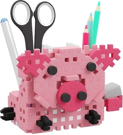 Suchen Sie ein kreatives Spielzeug, das zugleich für Ordnung auf dem Kinderschreibtisch sorgt? Das Set Mini Waffle tragbarer Organizer Schweinchen verbindet Bauspaß mit praktischem Nutzen. Nach dem Zusammenbau entsteht ein hübscher Stiftehalter, in den Buntstifte, Bleistifte, Schere und kleine Schulutensilien passen.