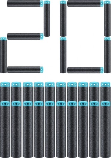 Die Darts bestehen aus robustem, leichtem Schaum, der starke Performance bietet und gleichzeitig sicher fürs Spielen ist. Dank der Kompatibilität mit den meisten führenden Blaster-Marken integrierst du sie leicht in deine Ausrüstung. Der wiederverschließbare Beutel hält deine Munition zusammen und bereit für den nächsten Einsatz.