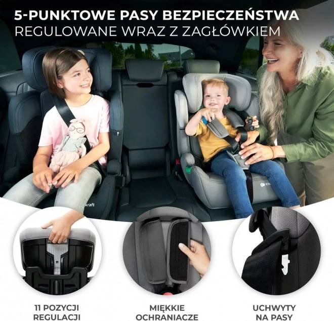 Der KINDERKRAFT COMFORT UP i-Size wächst mit Ihrem Kind von 76 bis 150 cm mit. Dank des EASY GROW-Systems passen Sie mit einem Zug die Höhe der Kopfstütze und die Länge der Gurte in 11 Stufen an. Die breite, tiefe Sitzfläche und die herausnehmbare, modulare Einlage sorgen für ergonomisches und sicheres Sitzen für kleinere und größere Kinder.