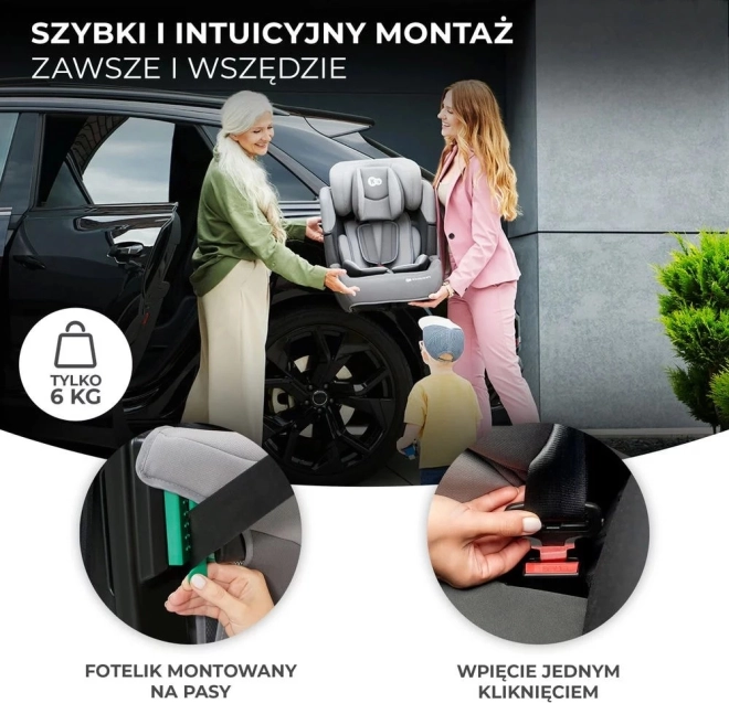 Die Installation ist schnell und intuitiv mit dem 3-Punkt-Sicherheitsgurt des Fahrzeugs – die ideale Lösung auch für Autos ohne ISOFIX. Die Gurtführung mit klaren Markierungen gewährleistet das korrekte Anschnallen. Für maximalen Komfort ist der Bezug abnehmbar und leicht waschbar, seitliche Paneele mit Mesh-Belüftung verbessern die Luftzirkulation und den Reisekomfort.