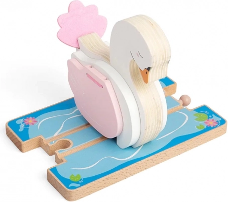 Fügen Sie der Welt Ihrer Holzeisenbahn ein romantisches Element hinzu – einen Schwanentunnel mit sanfter Pastellpalette und Teichmotiv. Kinder begeistert das einfallsreiche Design und die Möglichkeit, die Flügel anzuheben für eine leichte Durchfahrt der Züge. Das Teil passt hervorragend in Themenstrecken und erweitert die Spielmöglichkeiten.