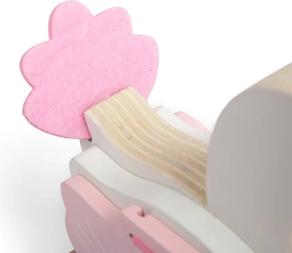 Heben Sie die rosa Schwanenflügel an und verwandeln Sie ihn in einen Tunnel. Kinder lieben das einfache, aber zauberhafte mechanische Element, das jede Fahrt belebt.
