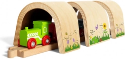 Der Tunnel passt auf Standard-Holzschienen und lässt sich problemlos mit beliebten Sets und Marken kombinieren.