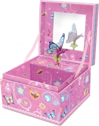 Dieses zauberhafte Musik-Schmuckkästchen mit Schmetterlingsmotiv wurde entworfen, um Kindern einen sicheren und übersichtlichen Platz zur Aufbewahrung von Ringen, Ohrringen und anderen kleinen Schätzen zu bieten. Nach dem Aufziehen des Mechanismus und dem Öffnen des Deckels erklingt eine angenehme Melodie, die die Freude über jeden entdeckten Schatz unterstreicht.