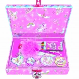 Dieses zauberhafte Set verbindet Spaß und Ordnung: Kinder können ihre Geheimnisse im abschließbaren Schmuckkästchen aufbewahren und im Briefset Briefe oder Notizen schreiben. Das zarte Einhornmotiv erfreut alle Fans magischer Geschichten und pastellfarbener Töne.