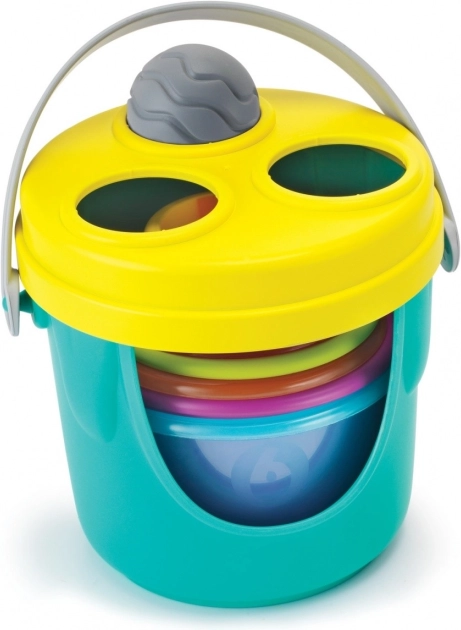 Alle 14 Teile lassen sich bequem im Eimer mit Deckel und Tragegriff verstauen. Nach dem Spielen ist schnell aufgeräumt und das Spielzeug bereit für unterwegs.