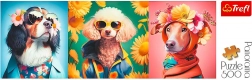 Entdecken Sie die verspielte Welt der Hunde-Modenschau in leuchtenden Farben und beeindruckendem Panoramaformat. Stilvoll gekleidete Hündchen mit Sonnenbrillen und Blumen machen das Puzzeln zu einem unterhaltsamen Erlebnis, und das fertige Bild wird zur originellen Dekoration.