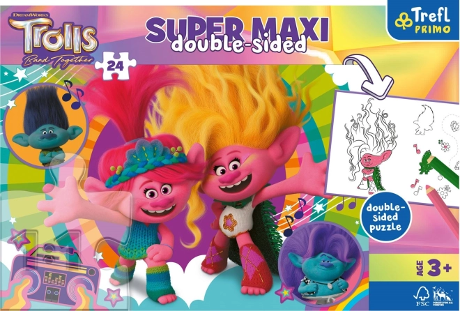 Dieses 3-in-1-Set von TREFL bringt Kindern viel Freude und Kreativität. Auf der einen Seite finden sie ein farbenfrohes Motiv aus dem Film Trolls 3, auf der anderen Seite eine schwarz-weiße Ausmalvorlage und eine unterhaltsame Aktivität zum Spielen. Die großen Teile sind an Kinderhände angepasst und fördern Geduld und Konzentration.