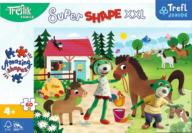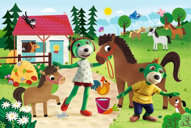 Entdecken Sie die Freude am Puzzeln mit dem fröhlichen Motiv der Treflíci auf dem Pferdehof. Das Puzzle mit großen XXL-Teilen ist so gestaltet, dass es Kindern die Handhabung erleichtert und Freude am erfolgreichen Fertigstellen des Bildes bringt. Dank hochwertigem Druck und festem Karton ist das Puzzle robust und für wiederholtes Spielen geeignet.