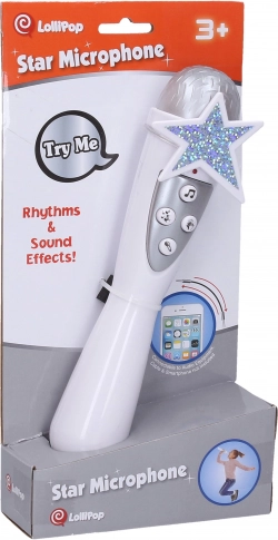 Genießen Sie Stunden der Unterhaltung mit dem Mikrofon Stern, das mehr bietet als nur Gesang. Drei aufregende Melodien, Applaus und Pfeifen sind nur der Anfang. Dieses Mikrofon ist ideal für Auftritte zu Hause, bei Familientreffen oder mit Freunden. Mit einem Anschluss für MP3-Player oder Handy (Kabel nicht im Lieferumfang enthalten) können Sie jederzeit Ihre Lieblingslieder singen.