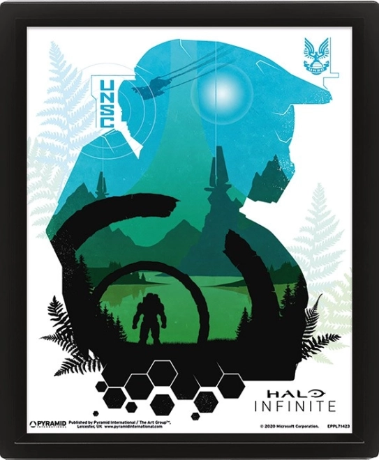 Entdecken Sie die Faszination der Halo-Welt mit diesem 3D-Bild, das modernen lentikularen Druck mit beeindruckenden visuellen Effekten kombiniert. Dieses Bild ist die ideale Wahl für Fans der Serie und alle, die ein einzigartiges Accessoire für ihren Raum suchen.
